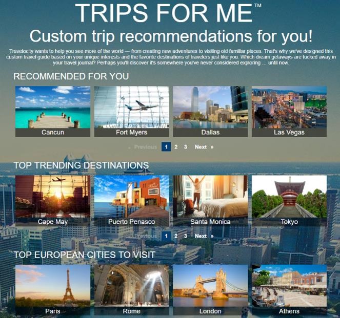 Travelocity powers Trips For Me™ with Adobe Campaign. This personalized web experience has resulted in 15% higher engagement than a standard hotel deals page, higher click-thru rates for related recurring weekly Trips For Me™ emails, and a reduction in bounces when customers utilized the tool.